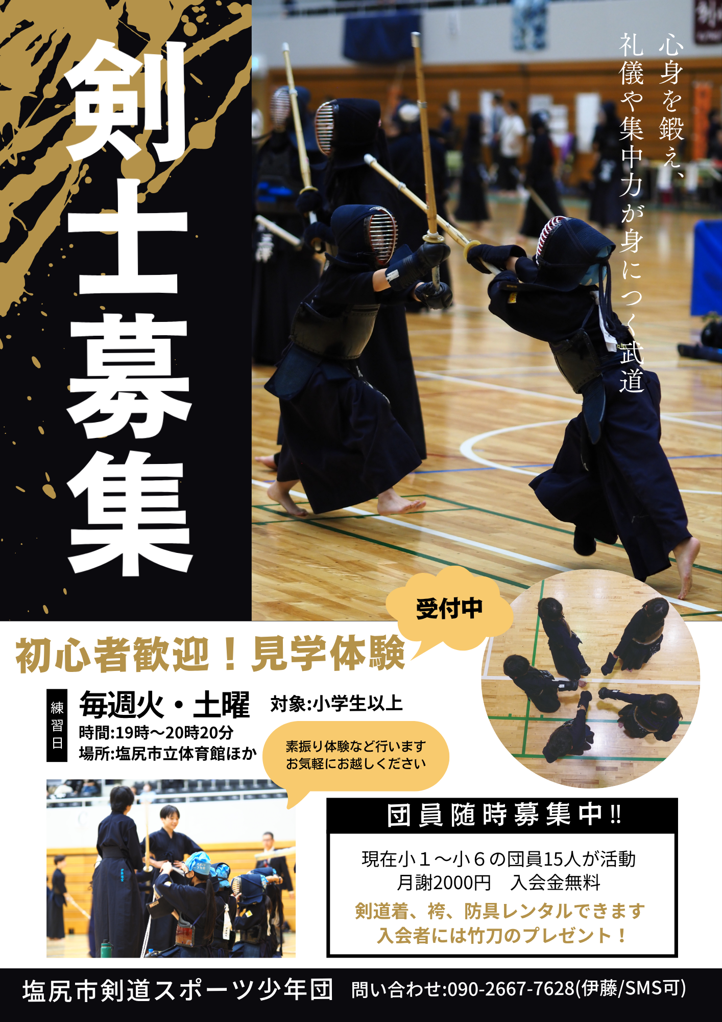 毎週火、土曜日に市立体育館で稽古を行っています。